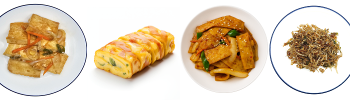 단백질 반찬 달걀말이, 닭가슴살 구이, 두부조림, 연어 소금구이