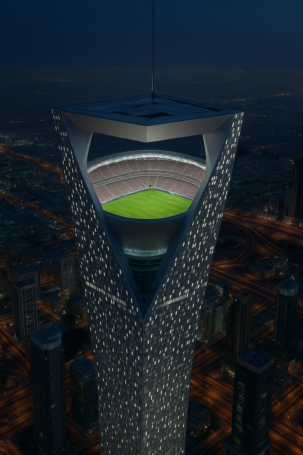 사우디아라비아가 2034년 FIFA 월드컵을 앞두고 세계 최초의 ‘하늘 축구장(Sky Stadium)’을 짓겠다는 구상을 공개했습니다. 높이 350m 초고층 건물 꼭대기에 4만 6000석 규모의 경기장을 올리겠다는 내용으로, 전 세계 축구팬들이 경악했습니다.