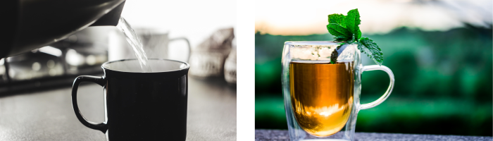 2) 90~100℃ 뜨거운 물을 붓고 5~10분 우린다.