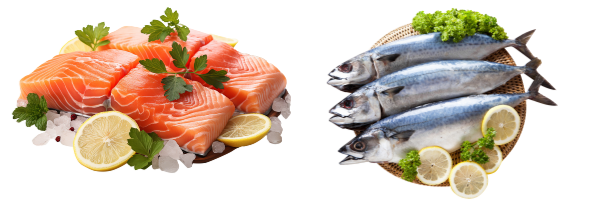 - 연어, 고등어, 정어리, 청어 등 등 푸른 생선