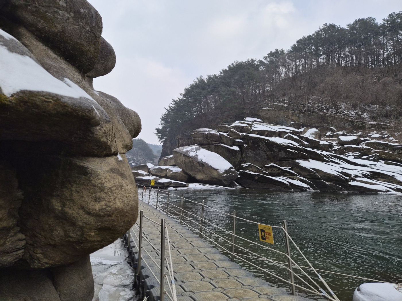 - 신발: 강 위 부교를 걷기 때문에 미끄러울 수 있습니다. 운동화보다는 접지력이 좋은 등산화나 트레킹화를 추천합니다.