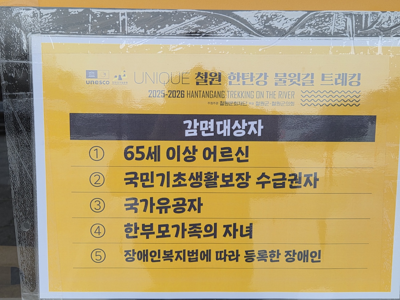 - 신발: 강 위 부교를 걷기 때문에 미끄러울 수 있습니다. 운동화보다는 접지력이 좋은 등산화나 트레킹화를 추천합니다.