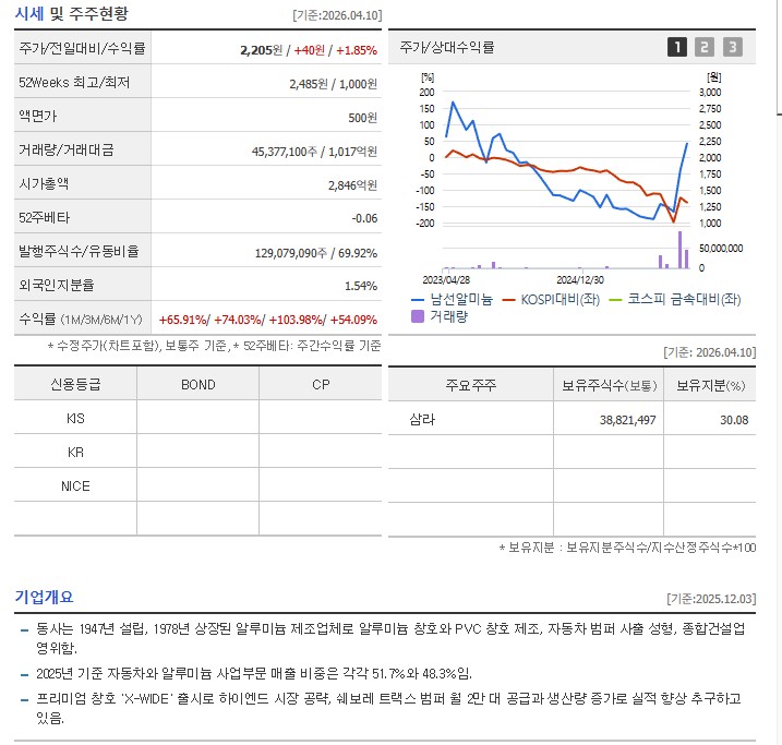 개별 종목 상세 분석: 남선알미늄 (008350)