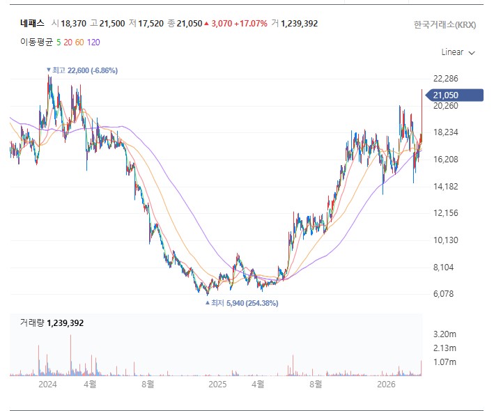 차트상으로 나타나는 주가의 흐름 또한 펀더멘털의 강력한 개선을 그대로 반영하고 있습니다. 최근 종가(3월 11일 기준)는 17,050원으로 전일 대비 2.83% 상승 마감하며 견조한 우상향 패턴을 그리고 있습니다. 가장 눈여겨볼 기술적 지표는 바로 '수급의 질'입니다. 긴 하락 추세를 뚫고 올라오는 과정에서 기관 투자자들이 5거래일 연속으로 매수 우위를 보이며 상승을 견인하고 있습니다. 정보력과 자금력이 뛰어난 기관(스마트 머니)이 매집에 나섰다는 것은 네패스의 구조적인 성장 스토리에 강력한 베팅을 시작했다는 기술적 청신호로 해석하기에 충분합니다.