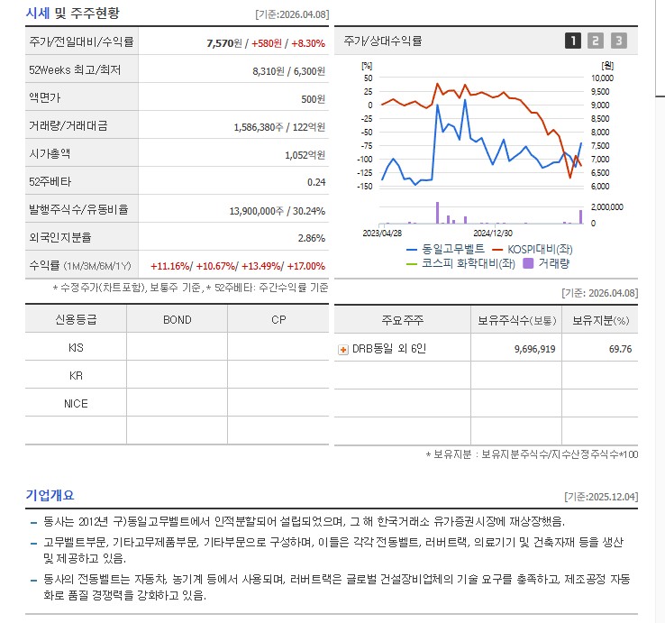 1. 동일고무벨트 기업 설명 및 종목 리스트