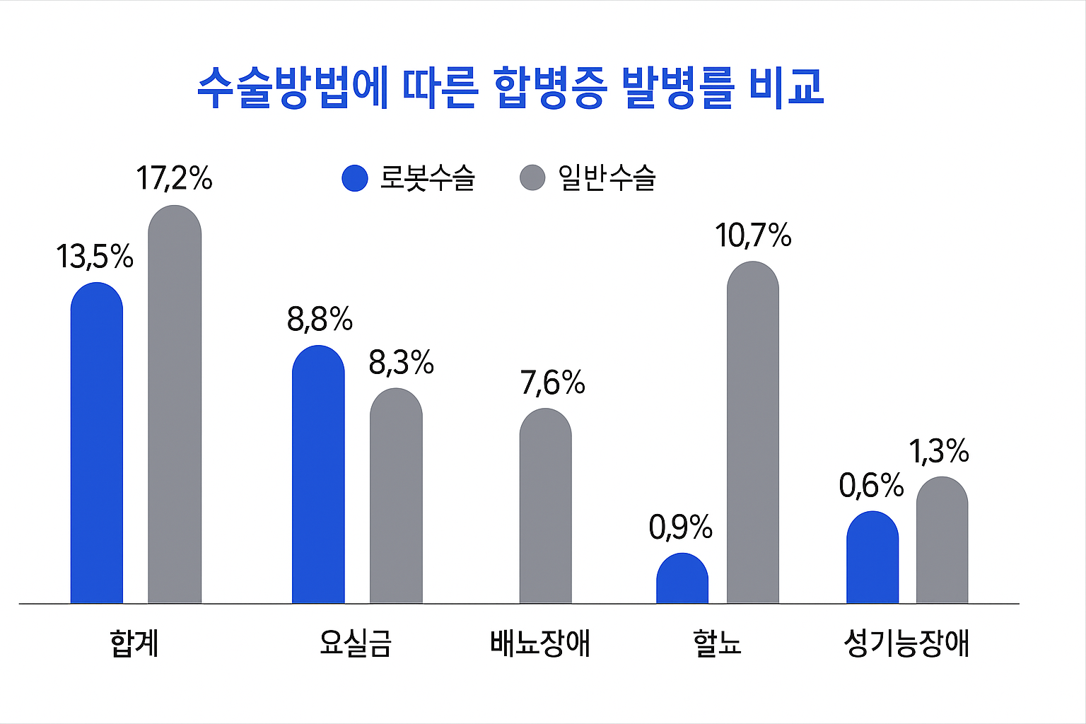 로봇수술은 비급여 항목으로 평균 비용이 1100만 원에 달하지만, 합병증이 적고 회복이 빠른 장점 때문에 선호도가 높습니다. 배뇨장애 발병률은 일반수술보다 1.3% 낮고, 혈뇨는 거의 발생하지 않았습니다.