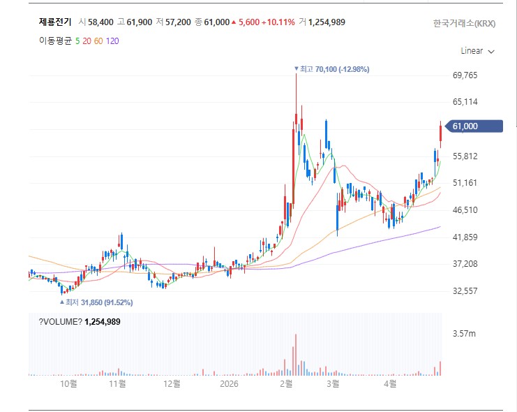 이 흐름이 이어지는 한, 제룡전기의 상승 스토리는 아직 끝나지 않았다고 볼 수 있습니다.
