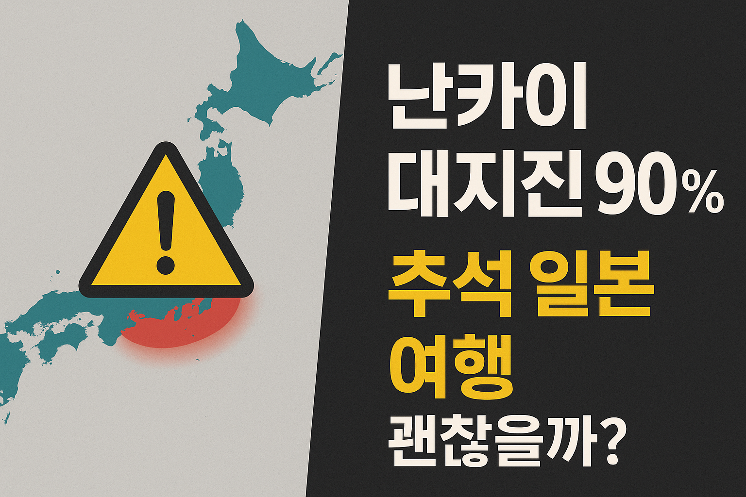 일본을 향한 여행과 출장은 언제나 매력적이지만, 최근 발표된 일본 정부 지진조사위원회의 보고서가 많은 사람들의 불안을 키우고 있습니다. 바로 난카이 해곡 대지진 발생 확률이 향후 30년 내 **최고 90%**에 달한다는 발표가 나온 것입니다. 특히 추석 연휴를 맞아 일본 여행을 계획한 한국인들에게는 “안전할까?”라는 걱정이 커지고 있죠.