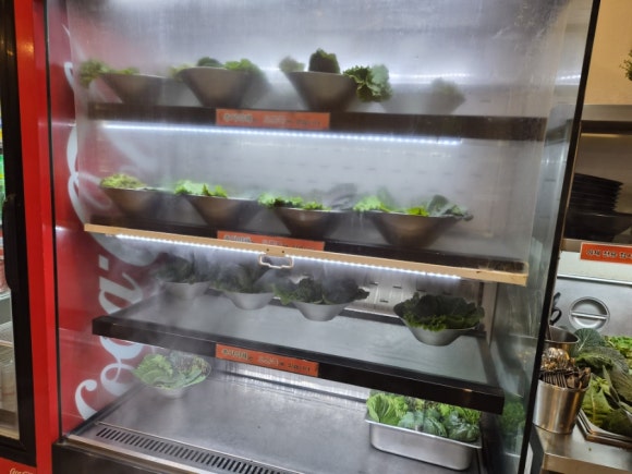 야채 셀프바와 넓은 주차장, 편리함까지 완벽