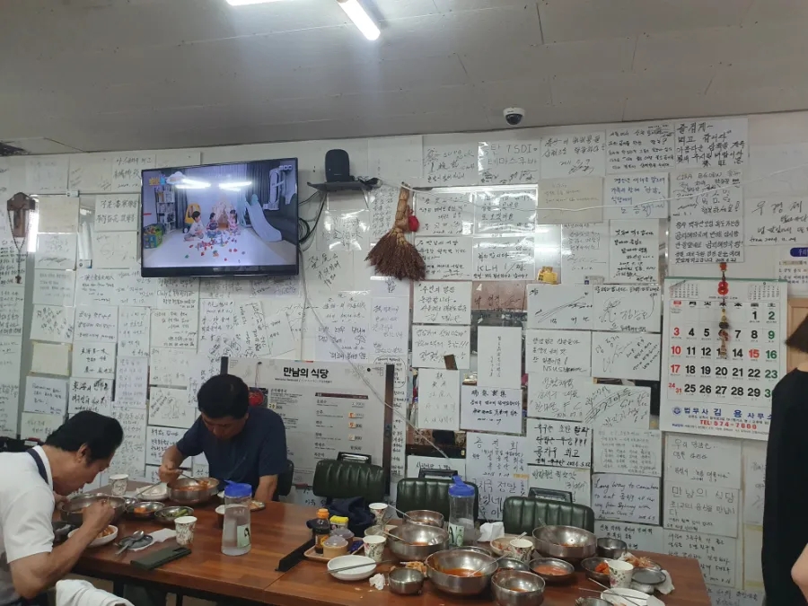 - 분위기: 손님들로 북적이고 벽에는 사인 가득