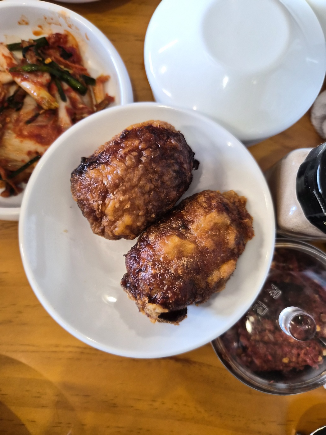 만두피는 얇고 안쪽은 꽉 차 있는데, 씹을 때마다 육즙이 톡톡 터지고 겉은 바삭해서 칼국수와 같이 먹기 딱 좋은 별미였습니다. 칼국수만 먹기 아쉬울 때 꼭 주문하세요.