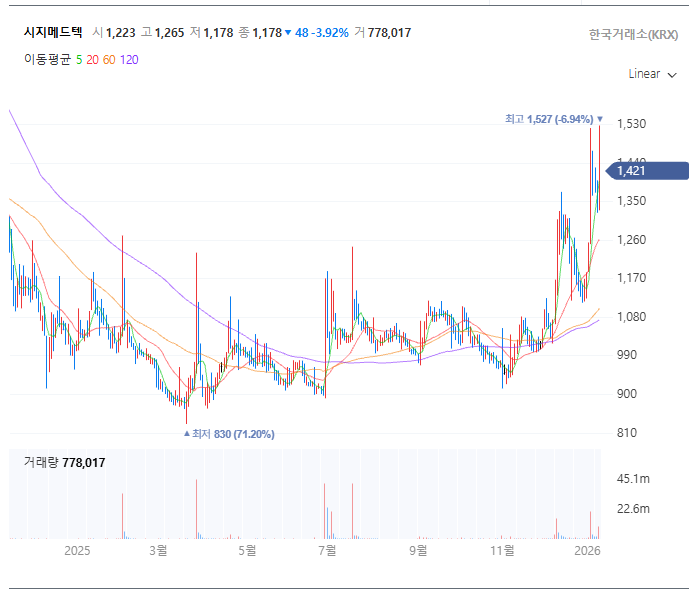업황이 돌아설 때 주가는 항상 실적보다 먼저 반응합니다. 시지메드텍의 최근 움직임은 바로 그 흐름 위에 올라탄 모습입니다.