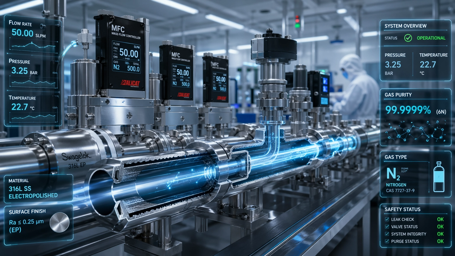 - 튜브 및 파이프: 가스가 이동하는 통로 역할을 하며 극도의 청정도가 요구됩니다.