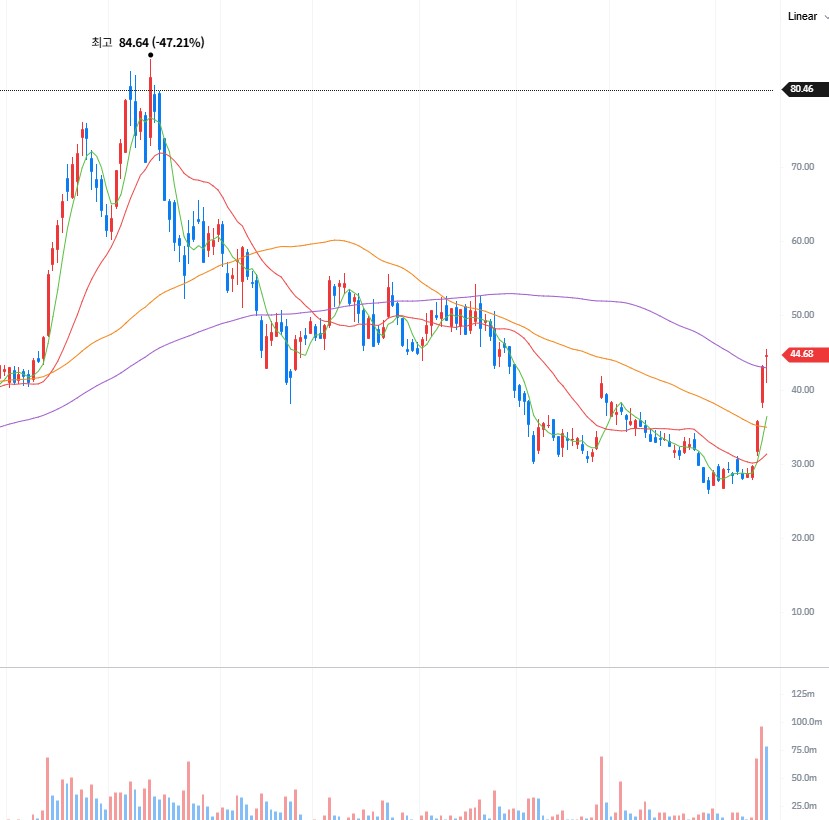 장기간의 횡보를 거치던 아이온큐의 주가는 거래량을 대거 동반하며 $35 선을 돌파했습니다. 기술적 관점에서 보면 강력한 골든크로스가 발생했으며, 전고점을 돌파하려는 기세가 매우 강합니다. $30 대가 새로운 강력한 지지선으로 작용할 것으로 보입니다.