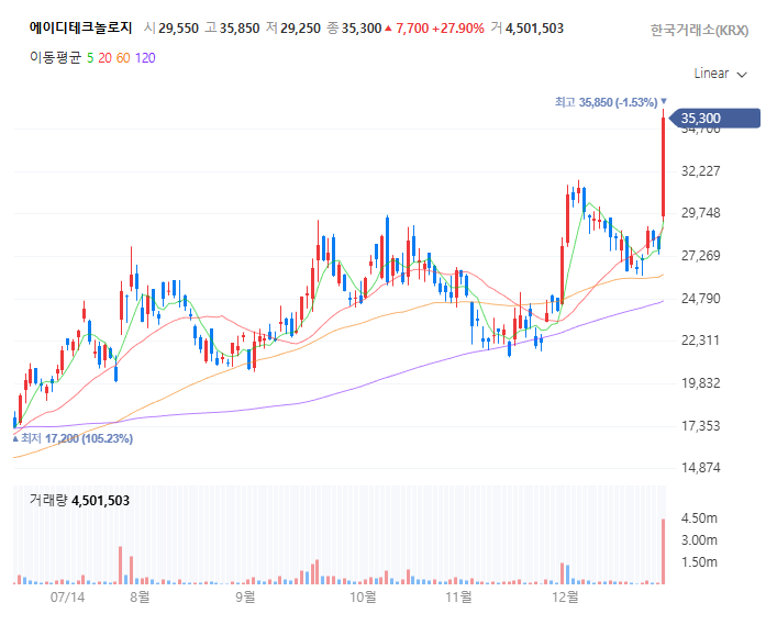 그중에서도 특히 눈에 띈 종목이 바로 에이디테크놀로지입니다. 단순 업종 동반 상승이 아니라, 개별 기업의 실적 턴어라운드 기대까지 겹치며 주가 탄력이 커진 모습입니다.