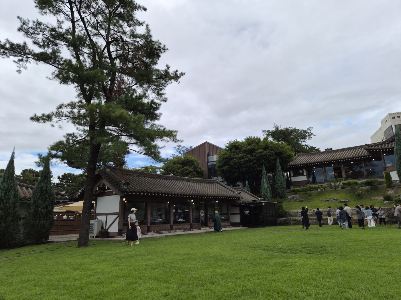 오뜨아르의 가장 큰 매력은 바로 한옥의 품격과 정원의 여유로움입니다. 별당 카페 앞에는 넓은 잔디 마당이 펼쳐져 있어 아이들이 마음껏 뛰어놀 수 있습니다. 전통 기와지붕과 나무 기둥, 아름답게 가꿔진 정원은 그 자체로 그림 같은 풍경을 만들어주어, 사진 촬영 명소로도 손색이 없습니다.