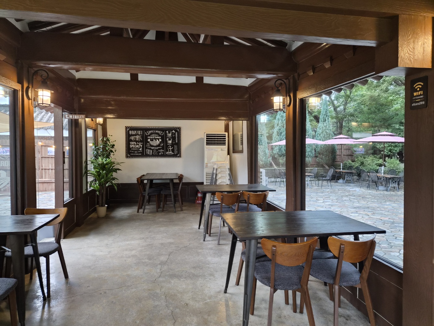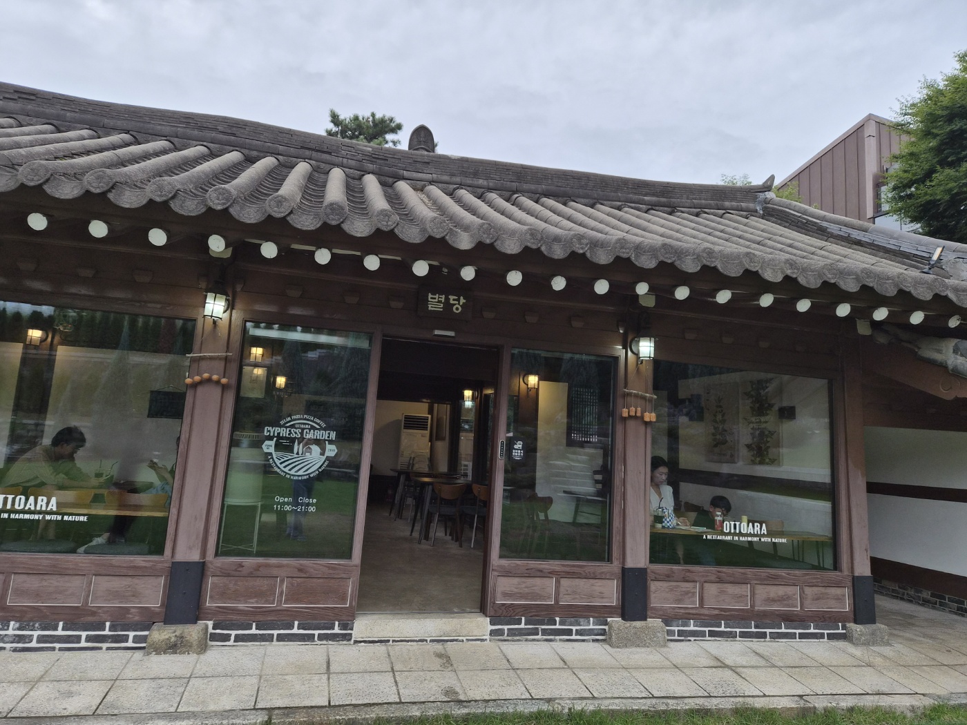 오뜨아르의 가장 큰 매력은 바로 한옥의 품격과 정원의 여유로움입니다. 별당 카페 앞에는 넓은 잔디 마당이 펼쳐져 있어 아이들이 마음껏 뛰어놀 수 있습니다. 전통 기와지붕과 나무 기둥, 아름답게 가꿔진 정원은 그 자체로 그림 같은 풍경을 만들어주어, 사진 촬영 명소로도 손색이 없습니다.