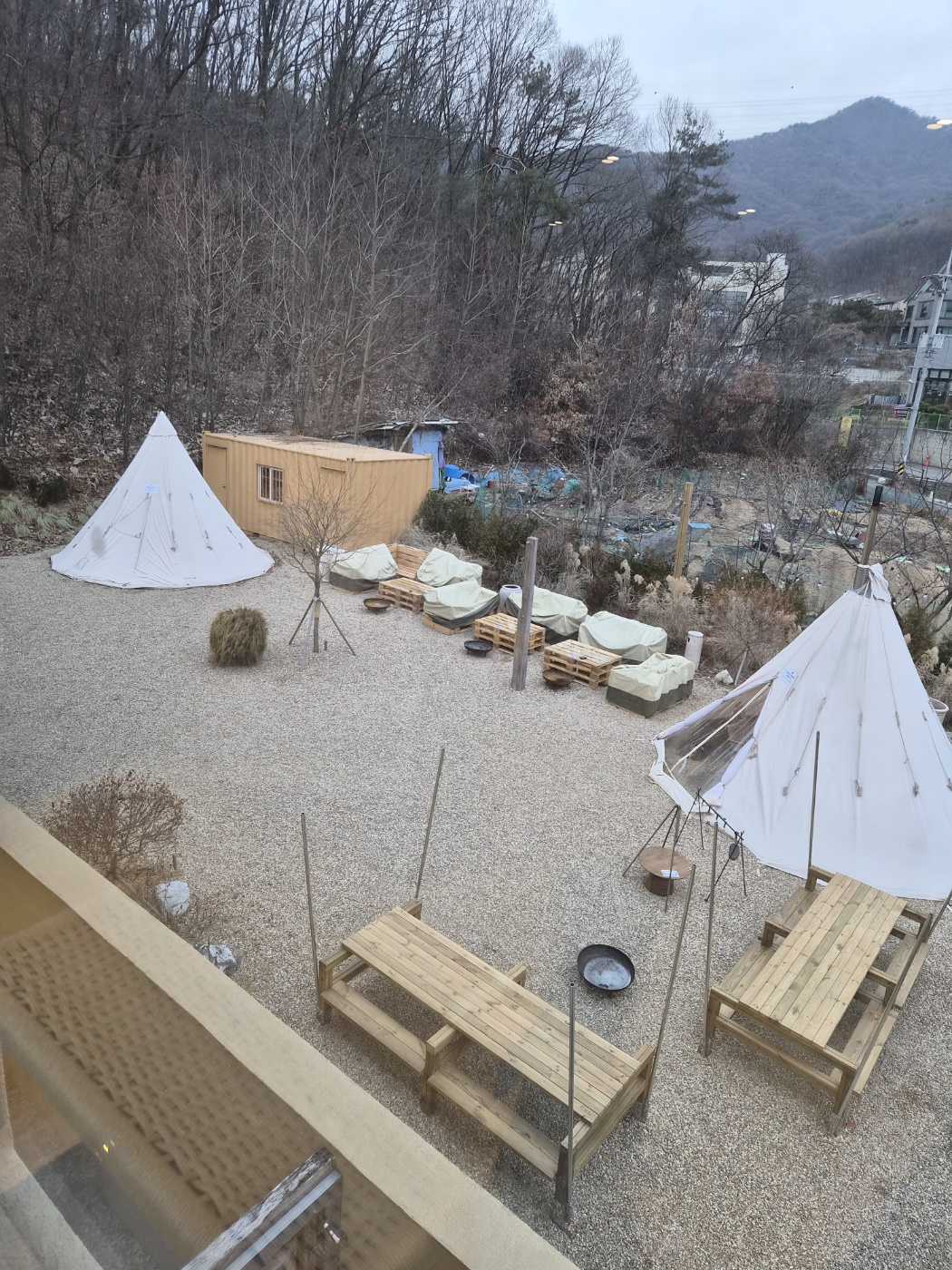 저녁이라서인지 야외 공간에 모닥불도 피워놓아서 잠시 불멍 하기에 좋았어요