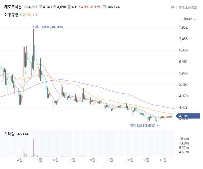 제로투세븐 일봉 시세 차트