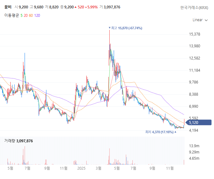 꿈비 일봉 시세 차트