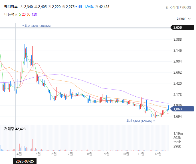 메디앙스는 영유아 스킨케어·위생용품 전문 기업입니다. 출산 수와 관계없이 위생·안전에 대한 지출은 오히려 증가하는 영역입니다.