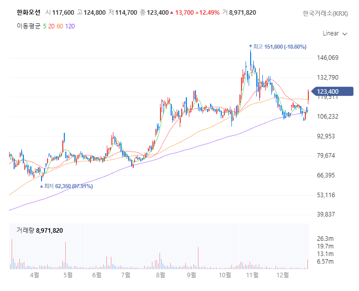 - 트럼프 대통령이 “신형 프리깃함 사업에서 한화와 협력” 취지 발언 → 시장에서 ‘직접 수혜주’로 인식