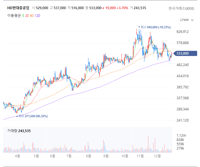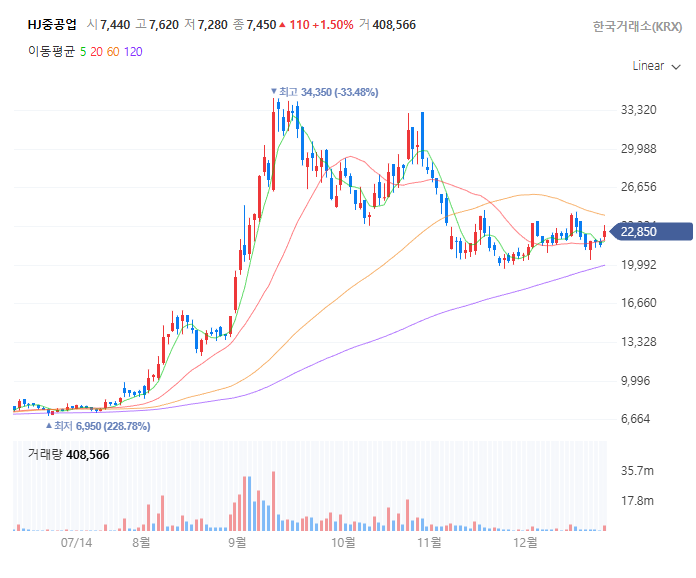 HJ중공업은 특수선/군함 경험이 거론되는 조선사로, 대형 조선사 대비 시총이 작아 뉴스에 민감하게 움직이는 구간이 생기기도 합니다.