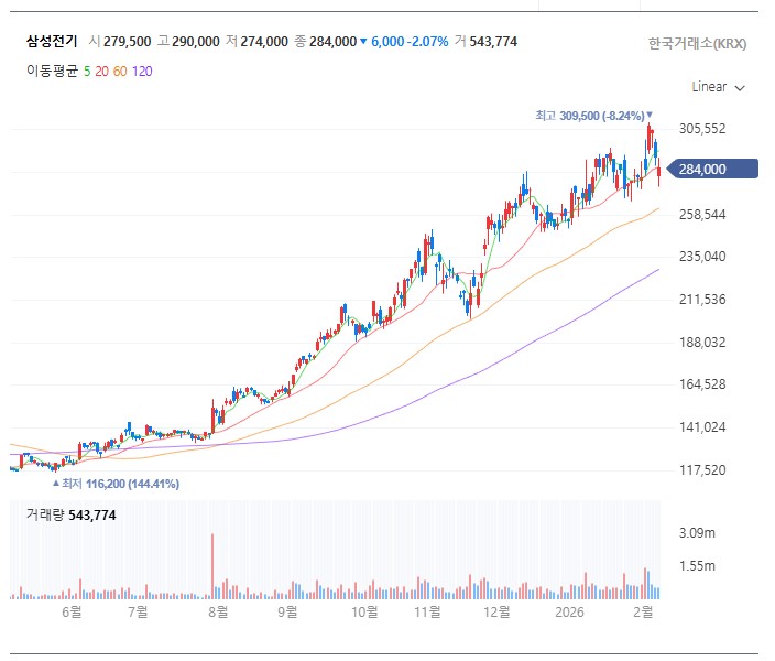 [재무 및 기술적 분석] 연간 영업이익이 100조~130조 원에 달할 것이라는 관측이 나옵니다. 기술적으로는 20일 이동평균선을 지지하며 우상향 채널을 견고하게 유지하고 있습니다.