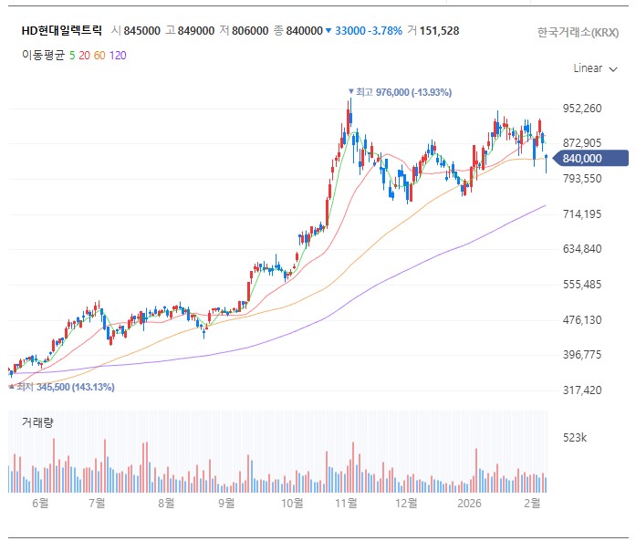[재무 및 기술적 분석] 2026년 매출 목표가 4.3조 원을 상회하며, 영업이익률은 25.1%로 개선될 전망입니다. 차트상으로는 단기 조정을 거친 후 다시 신고가를 경신하려는 강력한 매수세가 관찰됩니다.