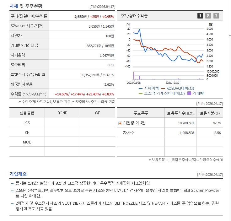 안녕하세요! 오늘도 여러분의 자산을 든든하게 지켜줄 알짜배기 종목 정보를 들고 왔습니다. 오늘 주인공은 이차전지 공정의 숨은 강자, 지아이텍(382480)입니다.