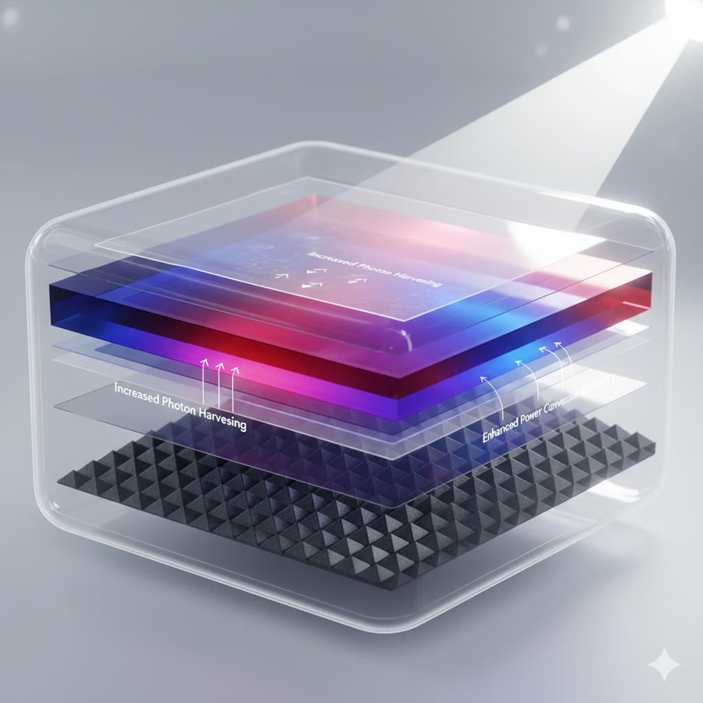 페로브스카이트 태양전지는 빛을 받아 전기를 만드는 '흡수층'뿐만 아니라, 전자를 옮겨주는 '전하수송층' 등이 겹겹이 쌓인 구조입니다.