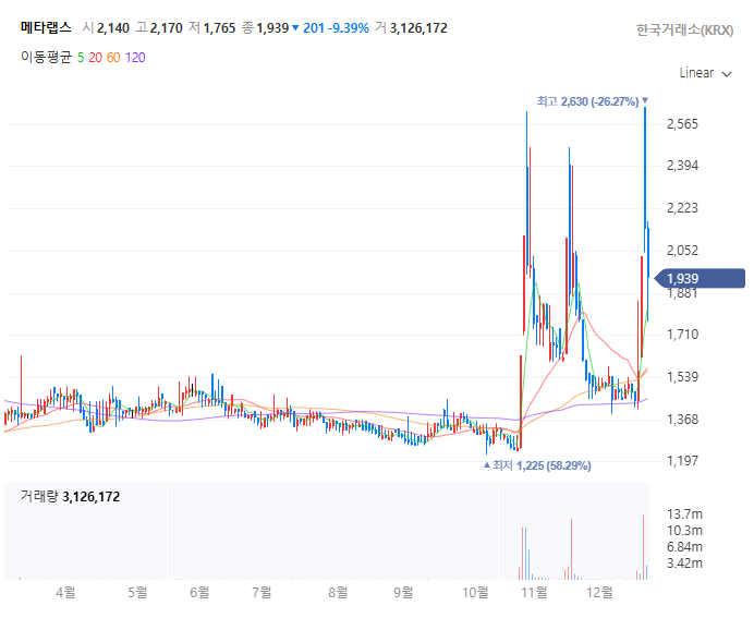 메타랩스는 테마가 강하게 붙을 때 탄력이 좋은 편입니다. 다만 중장기 관점에서는 “헬스케어 매출이 실제로 얼마나 쌓이느냐”가 승부처입니다.