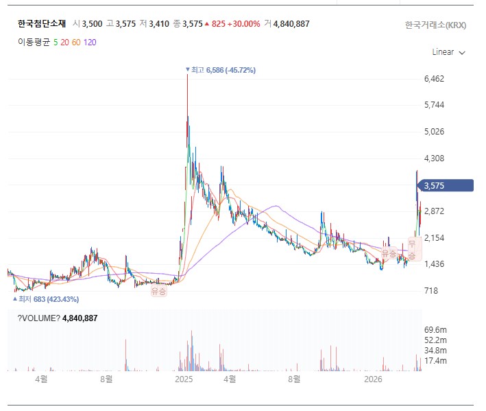 안녕하세요! 주식 시장의 뜨거운 열기를 전하는 블로거입니다. 오늘은 2026년 4월 첫째 주, 시장을 발칵 뒤집어 놓은 종목이죠. 바로 한국첨단소재(062970)에 대해 이야기해보려 합니다.