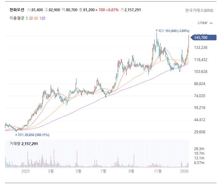 이유는 단순합니다. 지금 시장은 한화오션을 실적주가 아니라 군함·지정학·미국 조선 재건이라는 더 큰 이야기로 보고 있기 때문입니다.