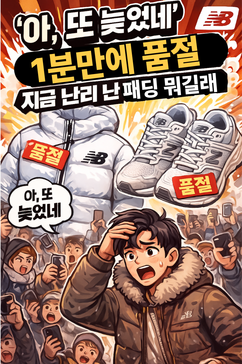 겨울이 시작되자마자 패션 커뮤니티와 SNS를 뜨겁게 달군 제품이 있습니다. 스포츠 브랜드 뉴발란스(New Balance)가 내놓은 신제품 패딩, ‘플라잉 77 슈퍼라이트 구스다운’과 겨울 신발 ‘윈터브리즈’입니다. 출시 후 1분도 지나지 않아 품절, 오프라인 매장에선 오픈런, 리셀 플랫폼에서는 프리미엄 형성까지. 단순 유행을 넘어 소비 심리를 흔들어놓은 ‘대란 상품’으로 성장했습니다.