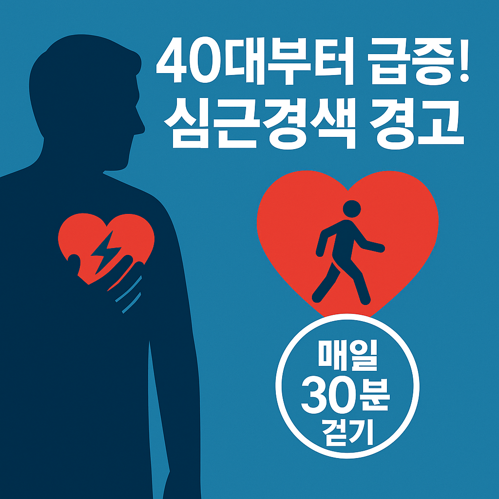 심근경색은 40대부터 발병률이 급격히 늘어나고 초기 사망률이 매우 높은 질환이다. 그러나 매일 30분 이상 유산소 운동을 하고, 금연과 절주, 식습관 개선, 혈압과 혈당 관리 같은 기본 습관을 지키면 충분히 예방할 수 있다. 나와 가족의 생명을 지키기 위해 **“오늘부터 매일, 심장 건강 체크”**를 실천하는 것이 가장 확실한 돌연사 예방법이다.