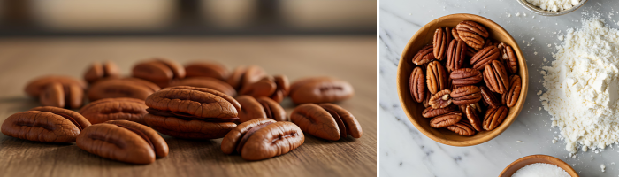 피칸은 항산화 성분이 풍부하고 미네랄 부담이 상대적으로 낮은 견과류입니다.