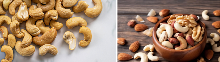 캐슈너트은 맛이 부드러워 과식하기 쉽지만 칼륨 함량이 비교적 높은 편입니다.
