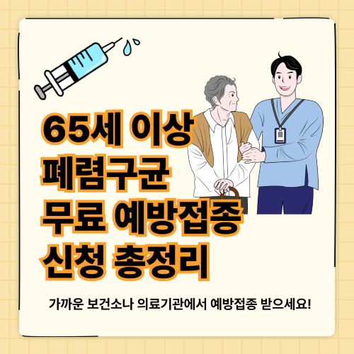 폐렴은 고령층에서 사망률이 높은 질환 중 하나로 꼽힙니다. 특히 65세 이상 노인의 경우, 면역력이 떨어져 폐렴구균 감염에 취약하기 때문에 예방접종이 필수적입니다. 다행히 정부에서는 만 65세 이상을 대상으로 폐렴구균 무료 예방접종을 지원하고 있습니다. 오늘은 접종 대상, 신청방법, 준비물, 접종 후 유의사항까지 총정리해 드리겠습니다.